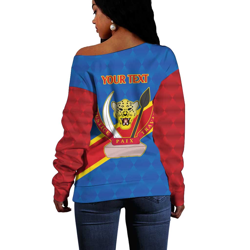 Africa DR of the Congo Personalized Off Shoulder Sweater Flag Style