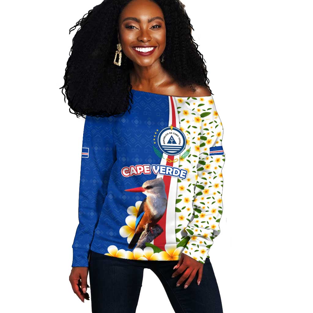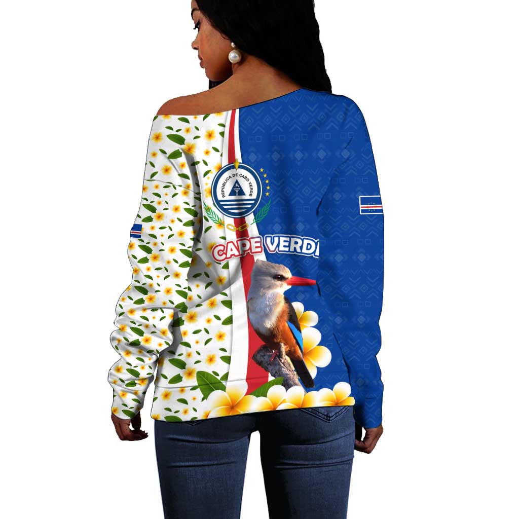 Cape Verde Off Shoulder Sweater Kingfisher Bird Floral Flag Spirit