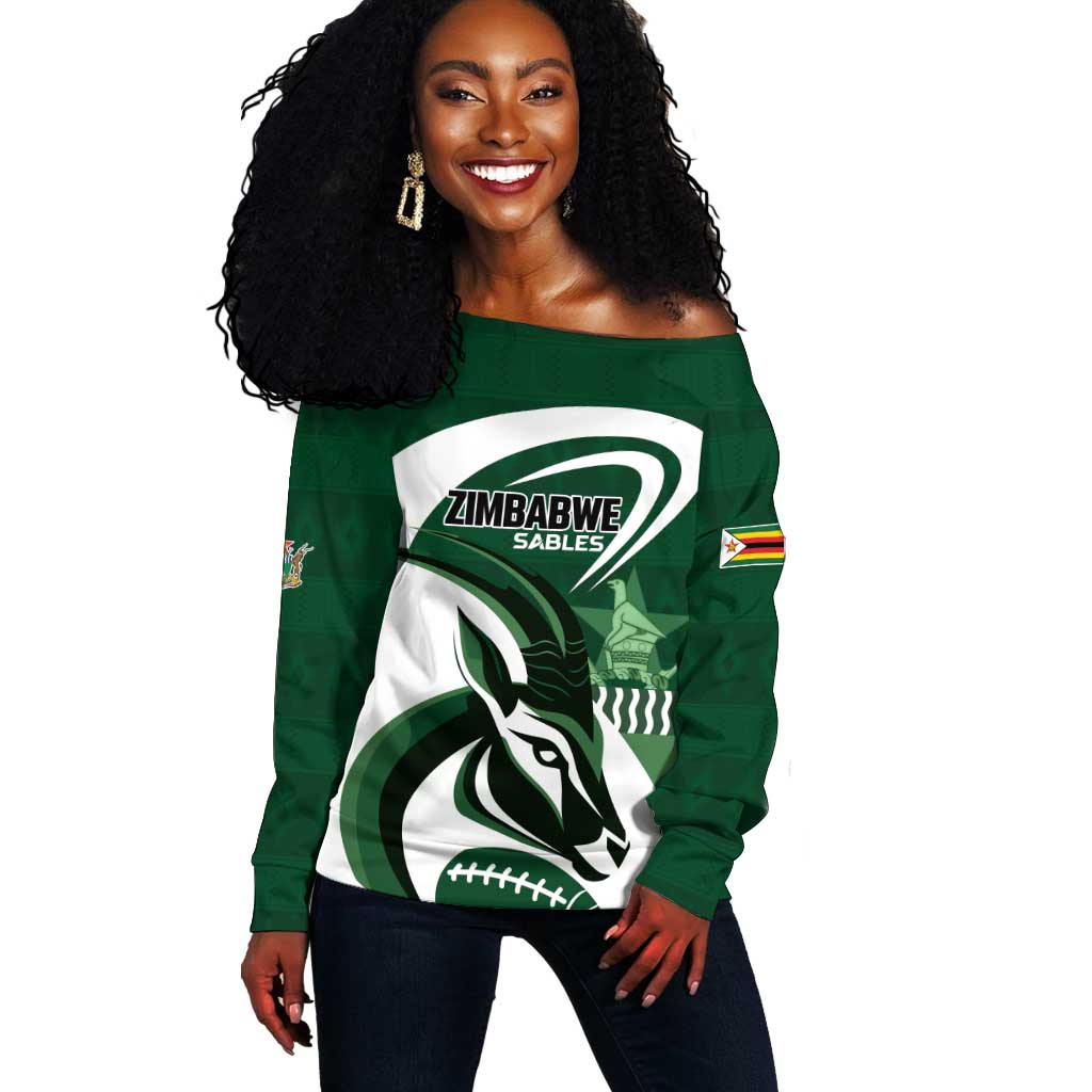 Custom Zimbabwe Sables Rugby Off Shoulder Sweater Go Champion