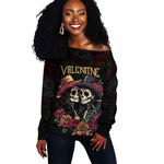 Personalised Sugar Skull Couple Valentine Off Shoulder Sweater Roses Romantic Love