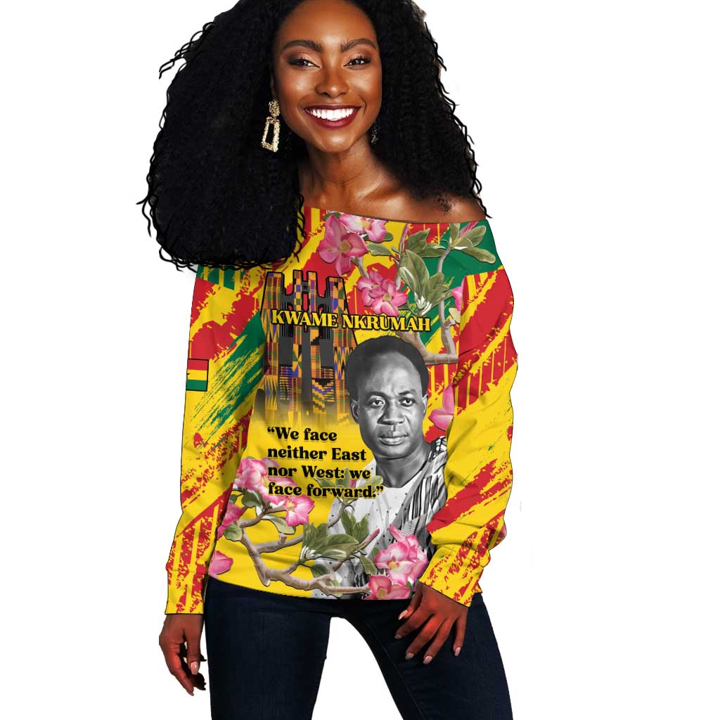 Personalized Ghana Kwame Nkrumah Memorial Day Off Shoulder Sweater Mausoleum Impala Lily