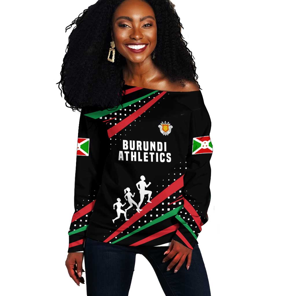 Rwanda Off Shoulder Sweater with Imigongo Spiraling Flag Hand Wave Time Spirit
