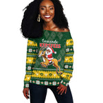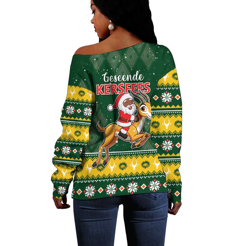 South Africa Christmas Off Shoulder Sweater Funny Santa Riding Springbok