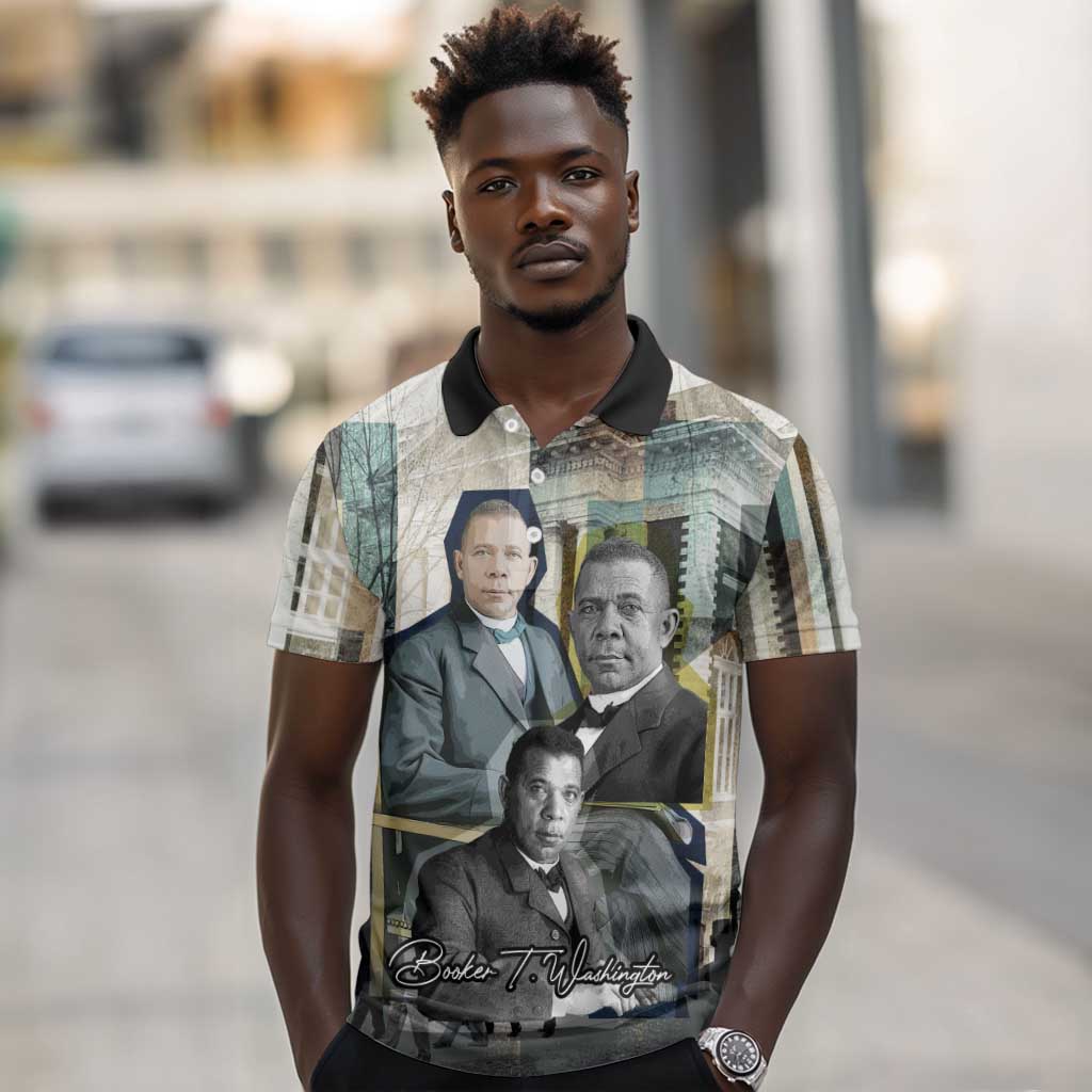 Booker T. Washington Polo Shirt Historic Portrait Collage Civil Rights Legacy Educational Pioneer Design