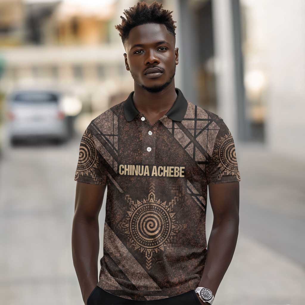 Chinua Achebe Polo Shirt with Tribal Symbol Design, The Storyteller Quote and Africa Wrote Back