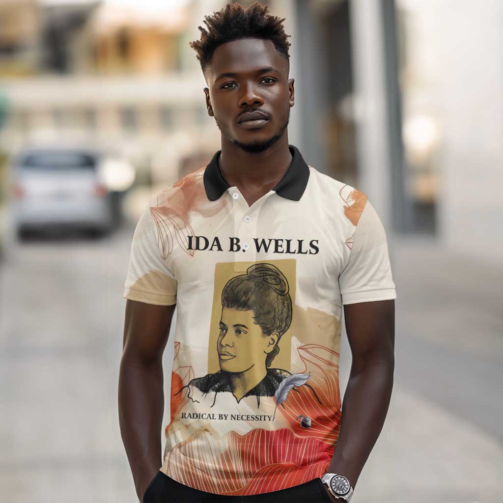 Ida B. Wells Polo Shirt with Floral Pen Design Illustrated Portrait Civil Rights and Journalism Tribute TS04