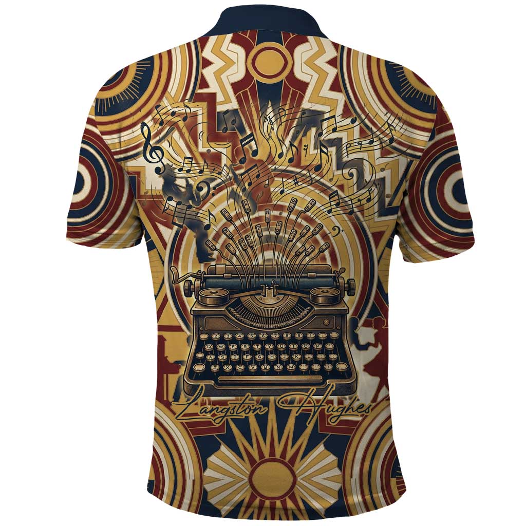 Langston Hughes Polo Shirt Vibrant Jazz Age Pattern - Typewriter and Silhouettes Celebration of Harlem Renaissance