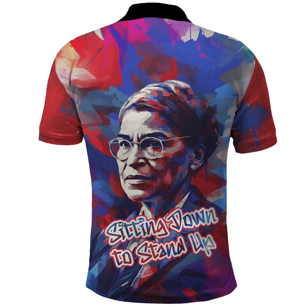 Rosa Parks Polo Shirt Red Blue Abstract Art Portrait Sitting Down to Stand Up Quote Civil Rights Tribute