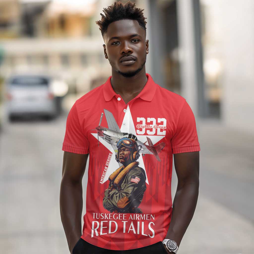 Tuskegee Airmen Red Tails Legacy Polo Shirt African American Pilots - Red