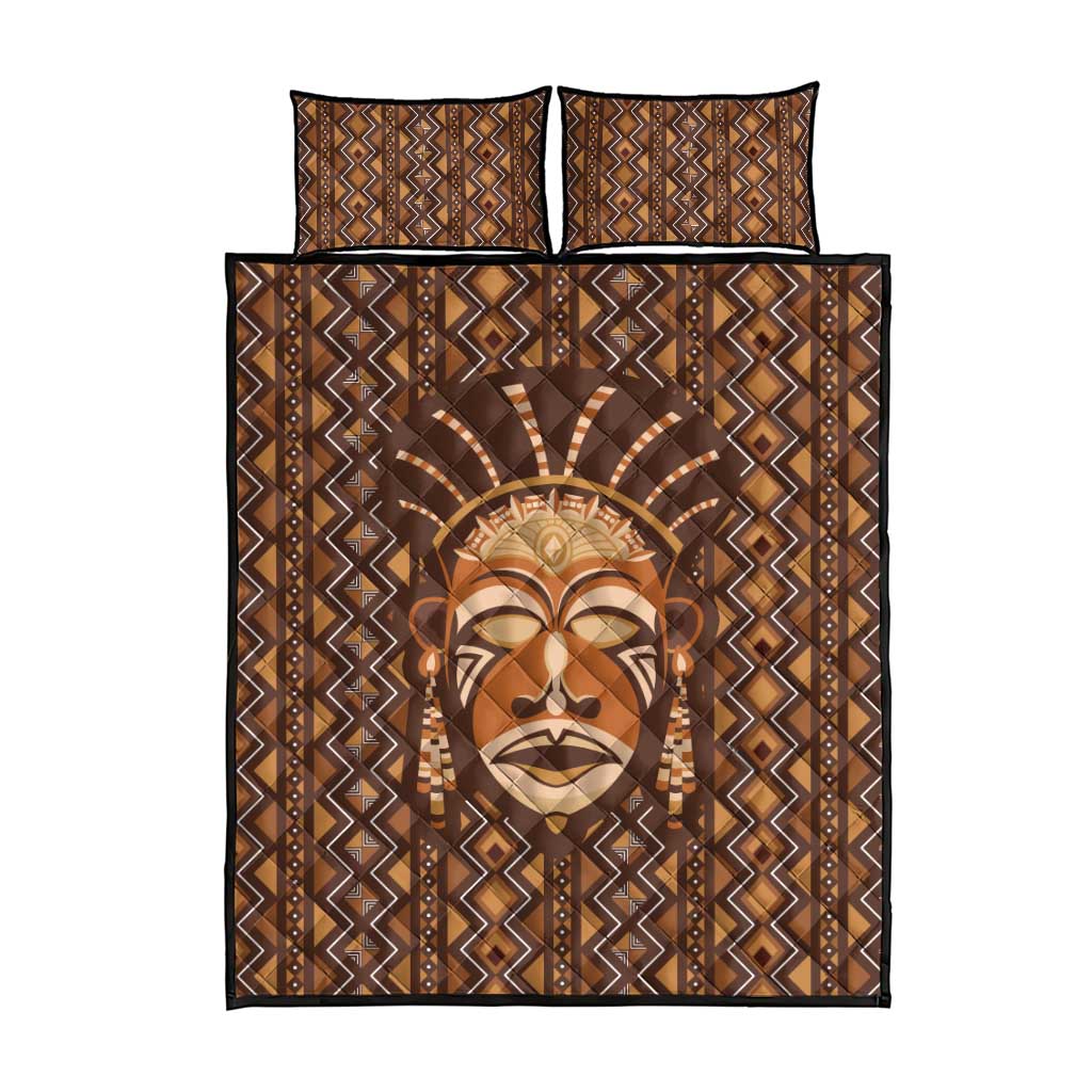 African Mask Printed Mudcloth Quilt Bed Set Afro Bogolan