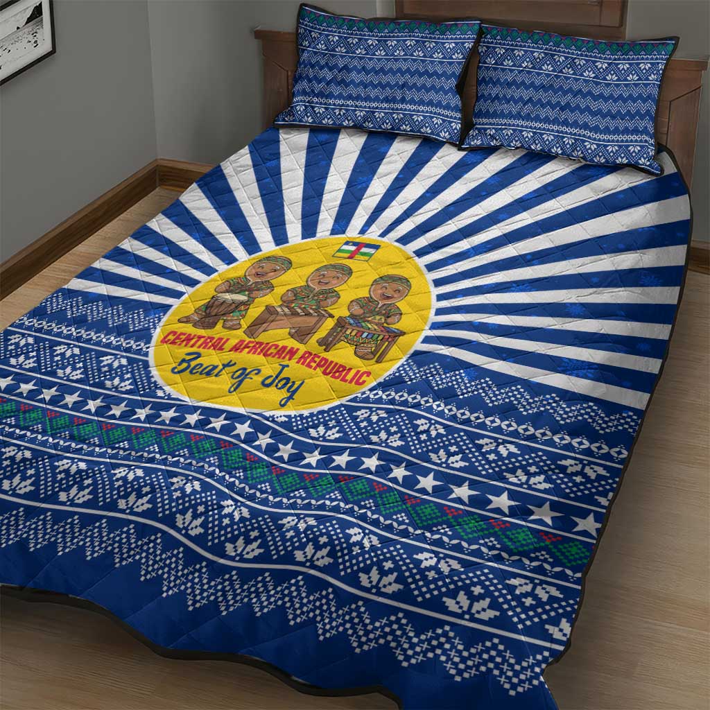 Central African Republic Christmas Quilt Bed Set Drumming Beat of Joy Tribal Pattern and Snowflakes