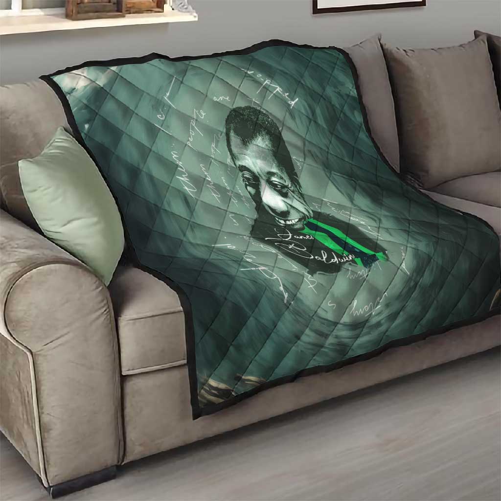 James Baldwin Quilt Green Handwritten Script Design Smiling Portrait Civil Rights and Literature