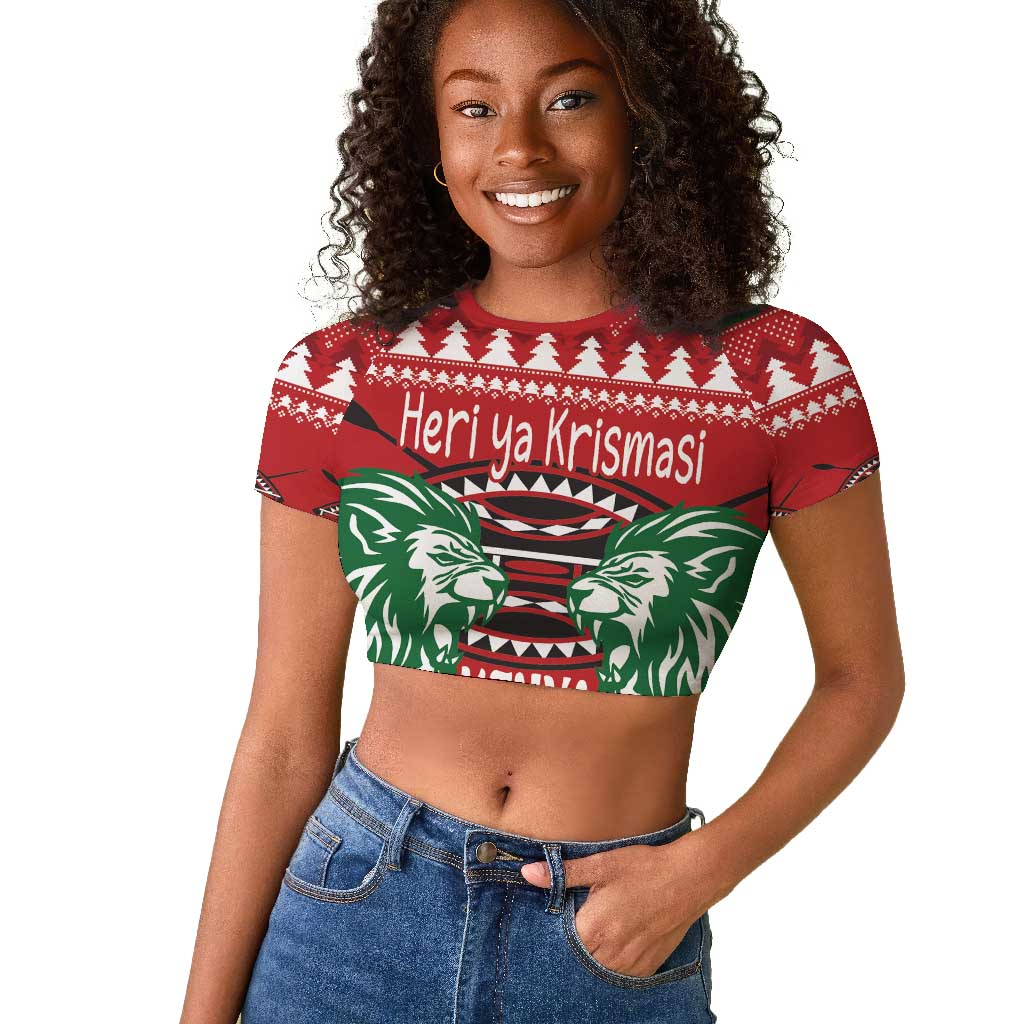 Afro Kenya Christmas Raglan Cropped T shirt Head Lion - Heri ya Krismasi