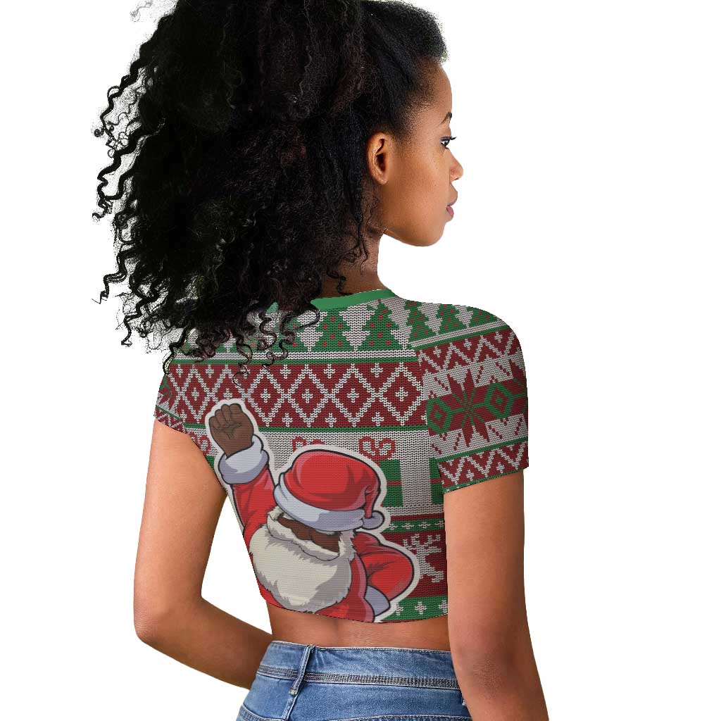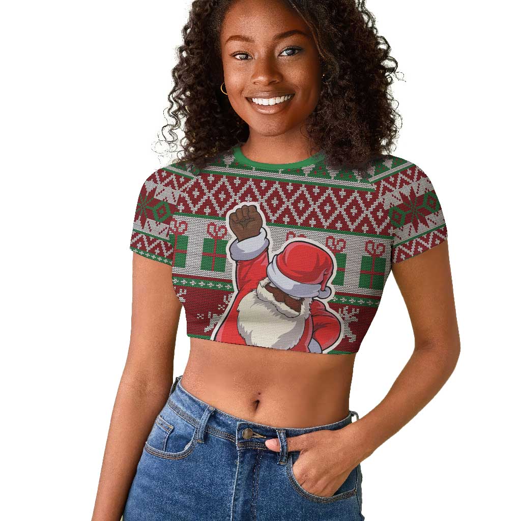 Black Santa Fist Christmas Africa Raglan Cropped T shirt All Power to the People