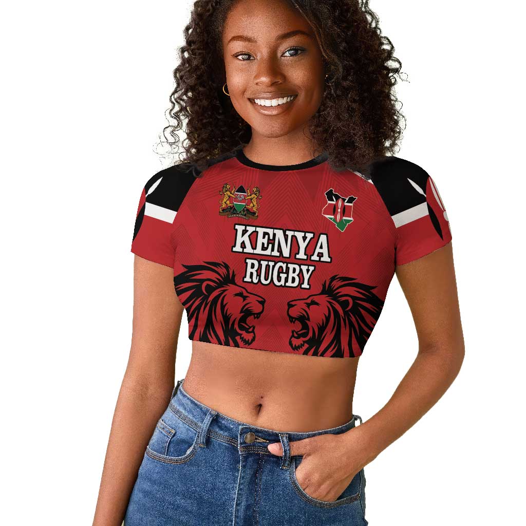 Custom Afro Kenya Rugby Raglan Cropped T shirt African Lion Head