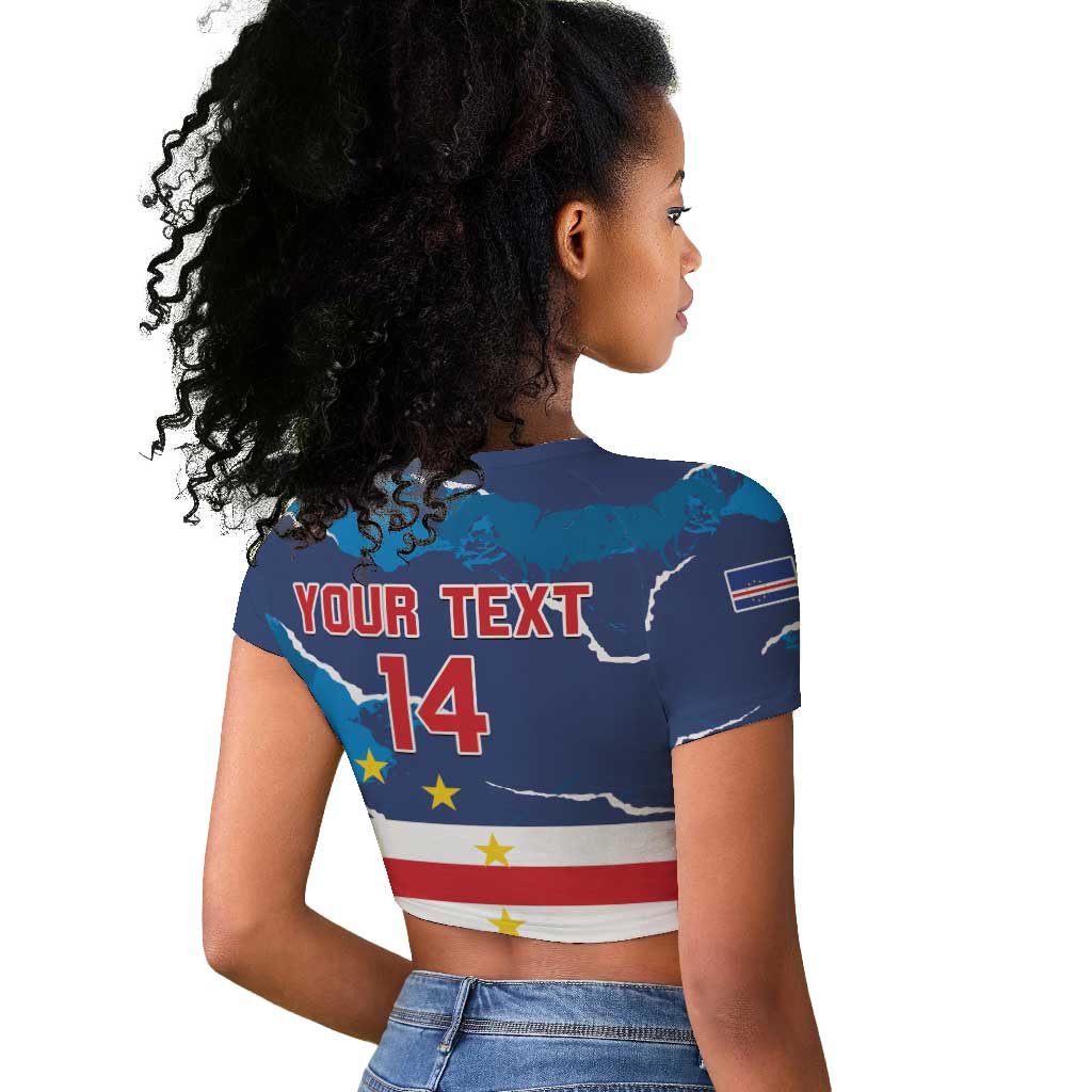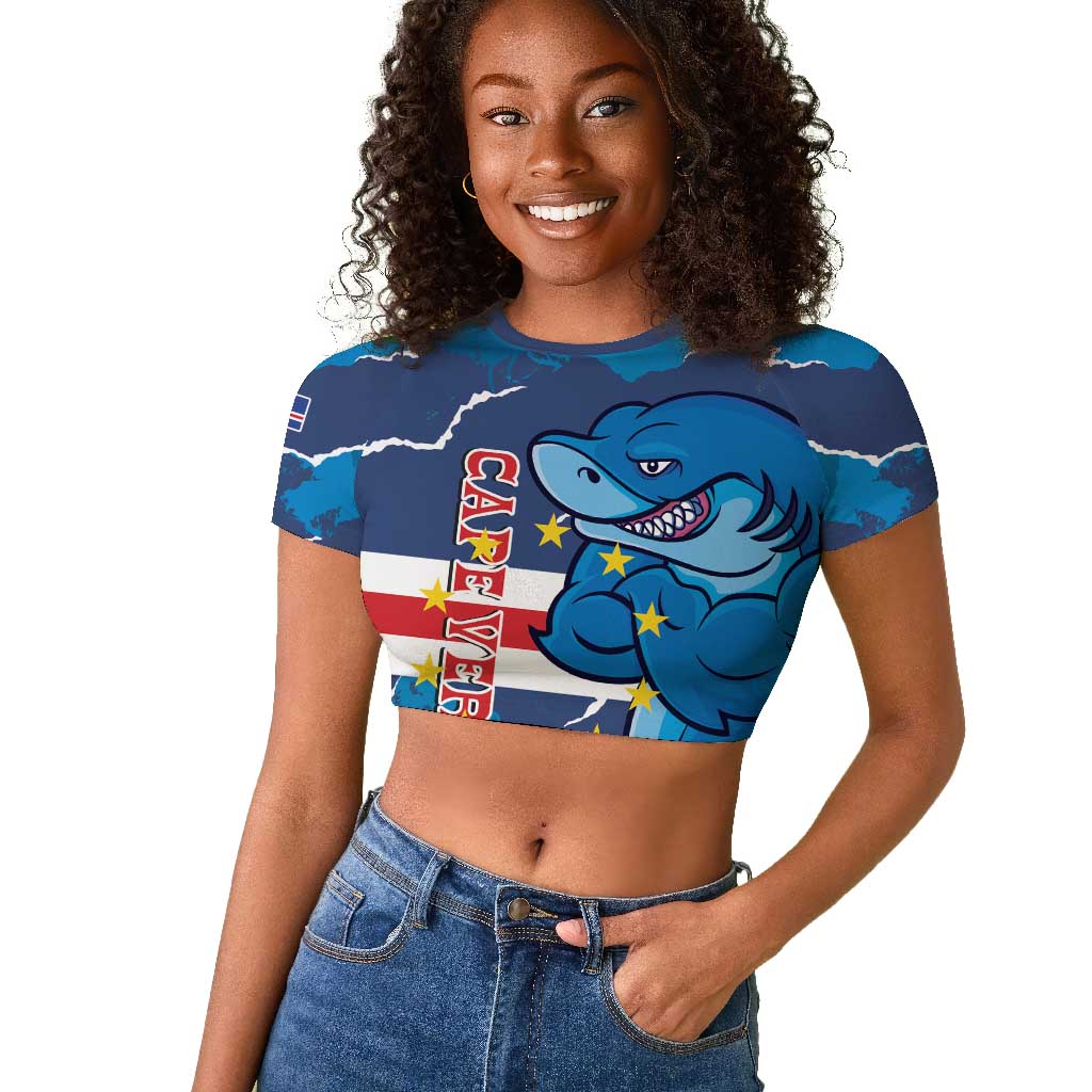 Custom Cape Verde Football Raglan Cropped T shirt Blue Sharks Mascot
