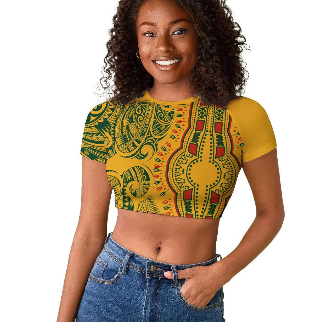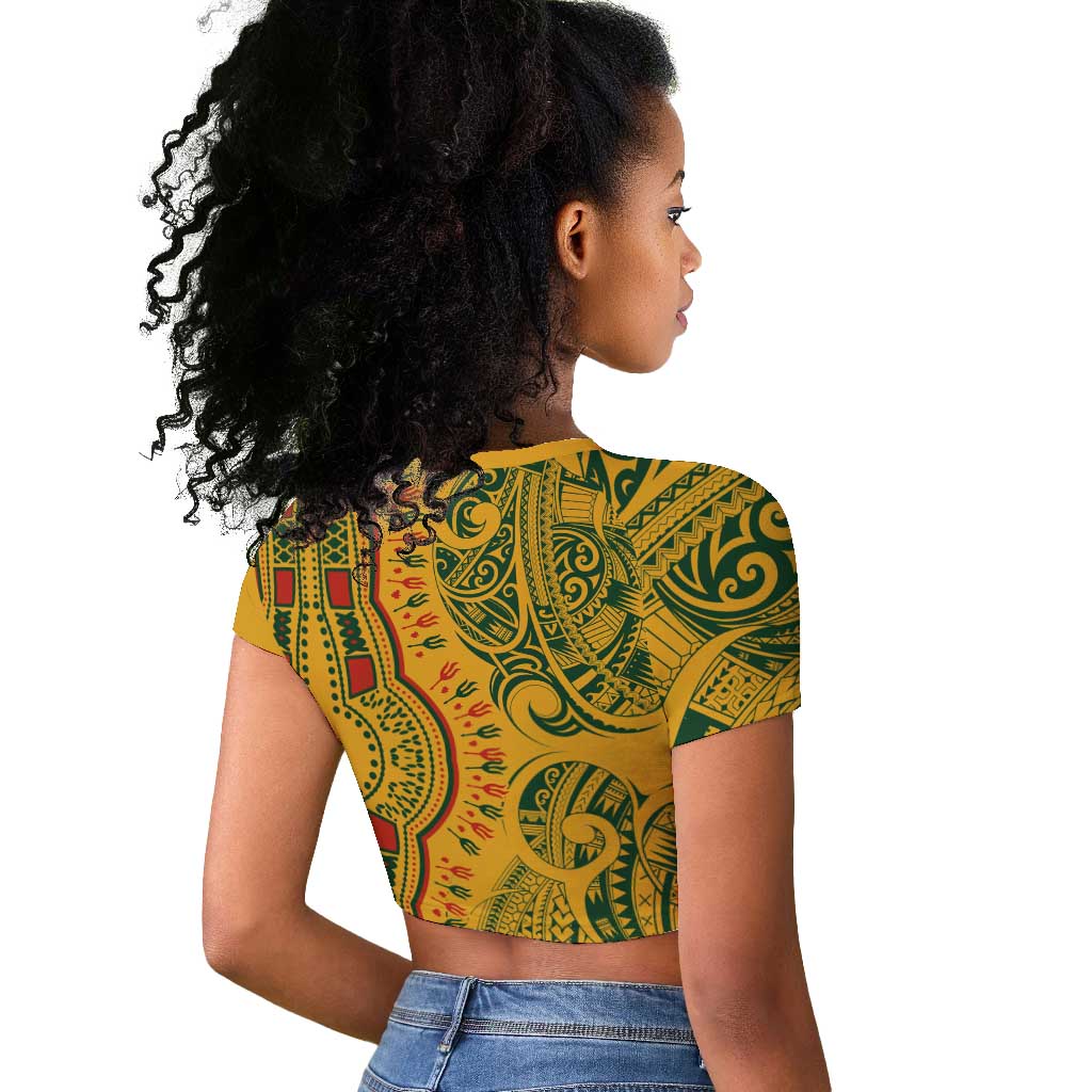 Dashiki and Polynesian Pattern Raglan Cropped T shirt Afro Pacific Culture Gold Version