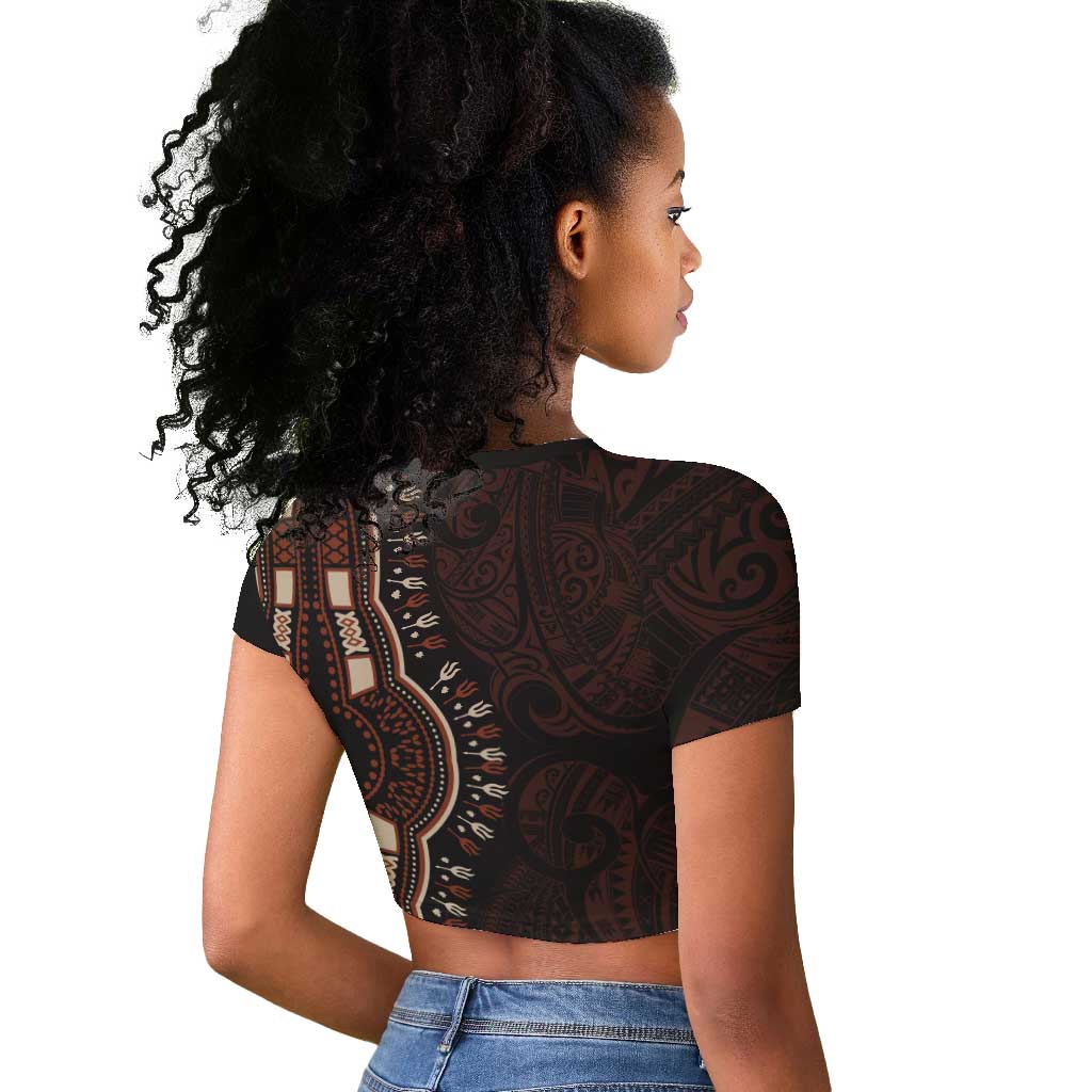 Dashiki and Polynesian Pattern Raglan Cropped T shirt Afro Pacific Culture Red Version