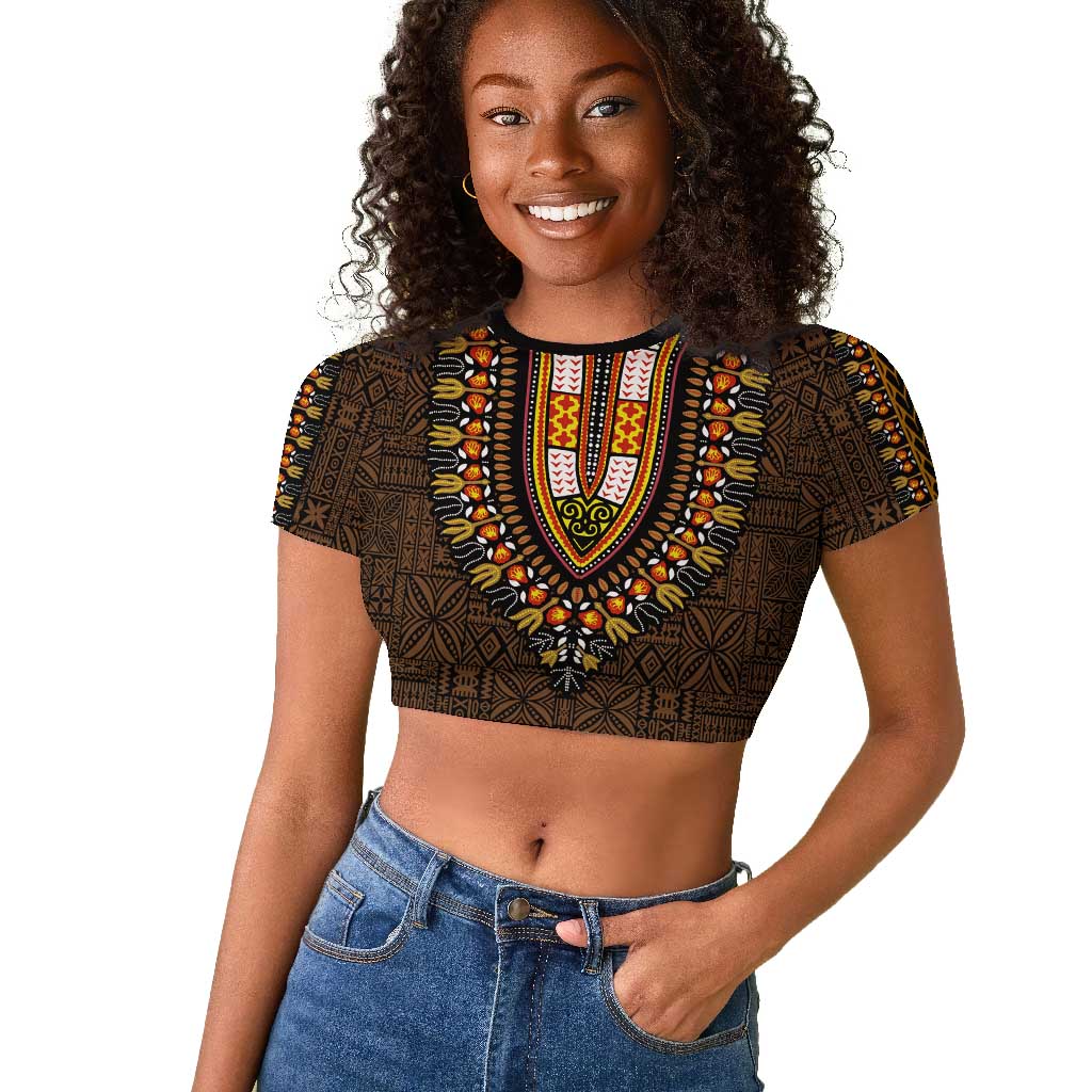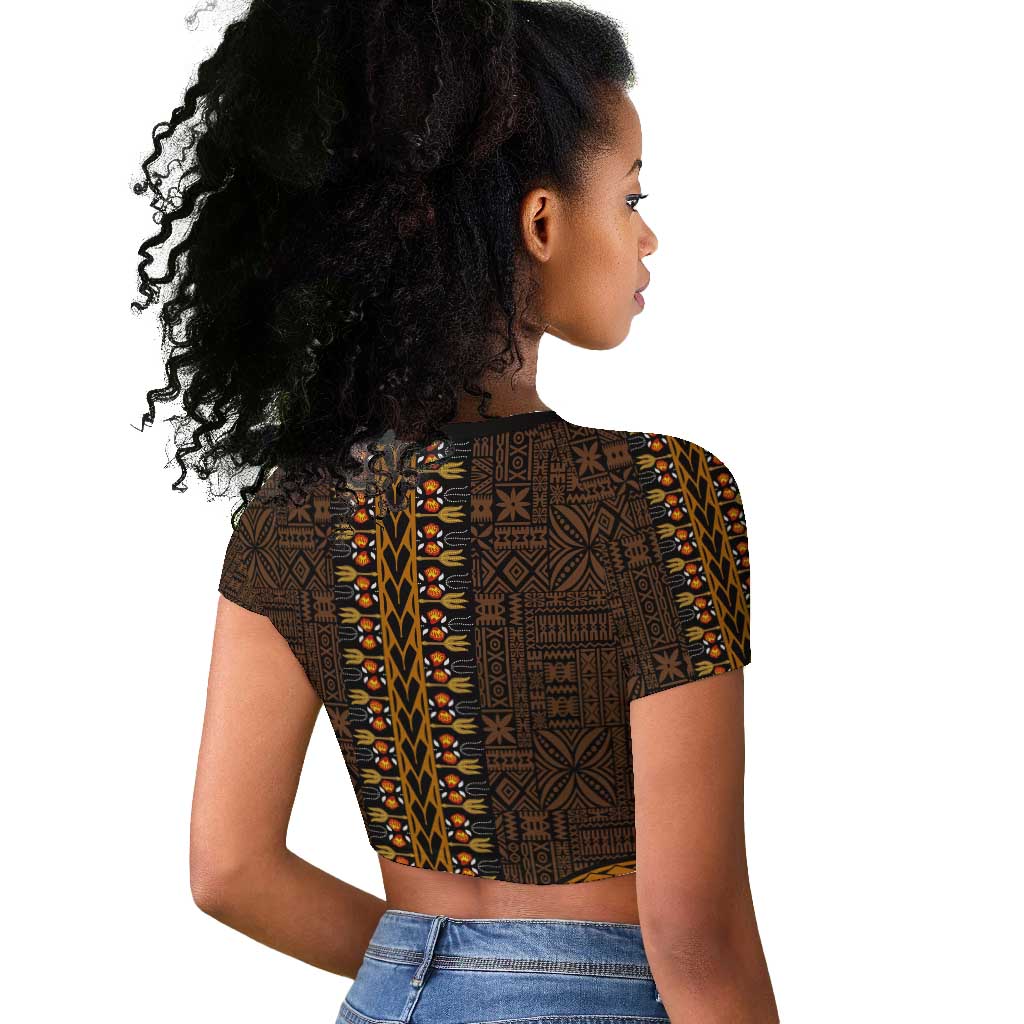 Gold Dashiki and Tapa Pattern Raglan Cropped T shirt Africa-Polynesia Together Culture