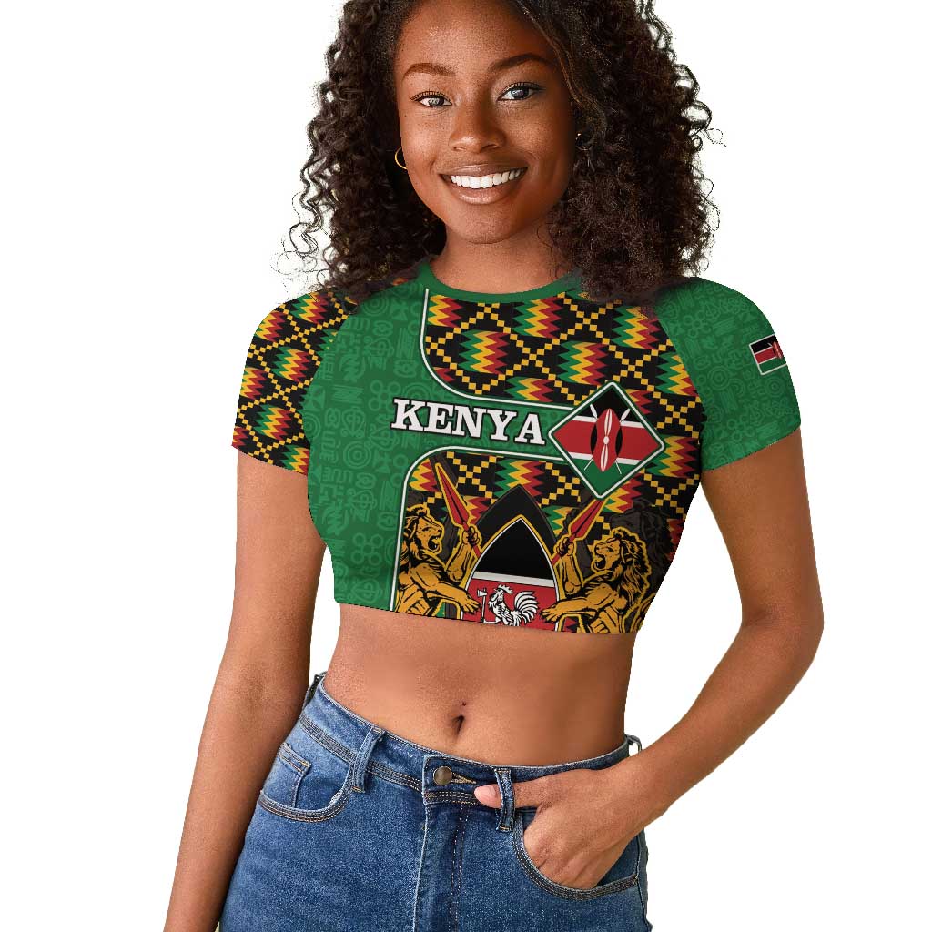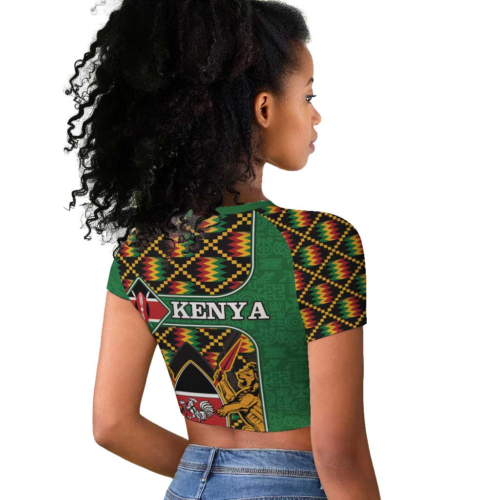 Kenya Raglan Cropped T shirt - Kente Pattern, Coat Of Arms Design
