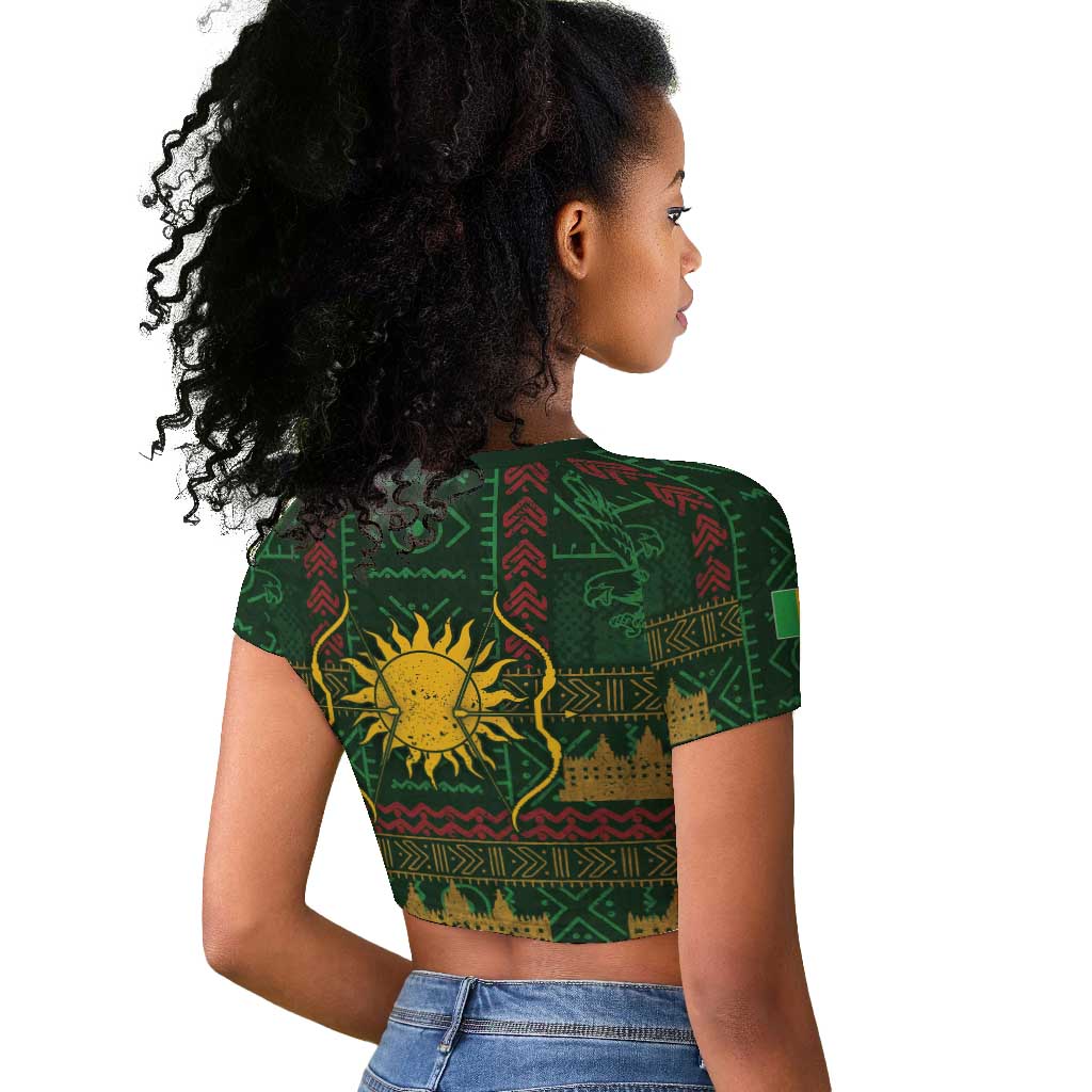 Mali Raglan Cropped T shirt Golden Sun And Mosque Patterns Retro Style
