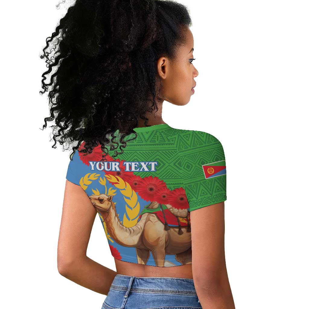 Personalised Eritrea Arabian Camel Raglan Cropped T shirt Gerbera Flower - Flag Color