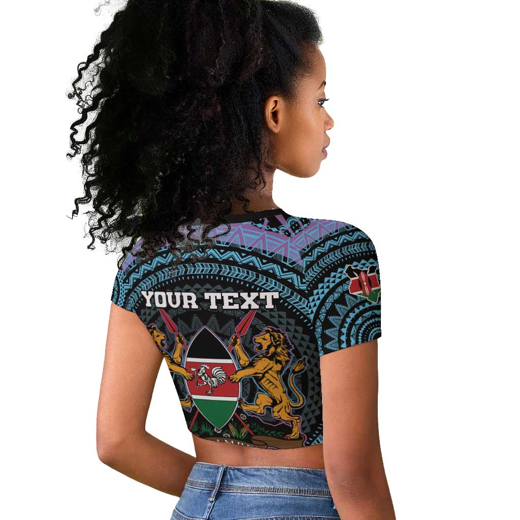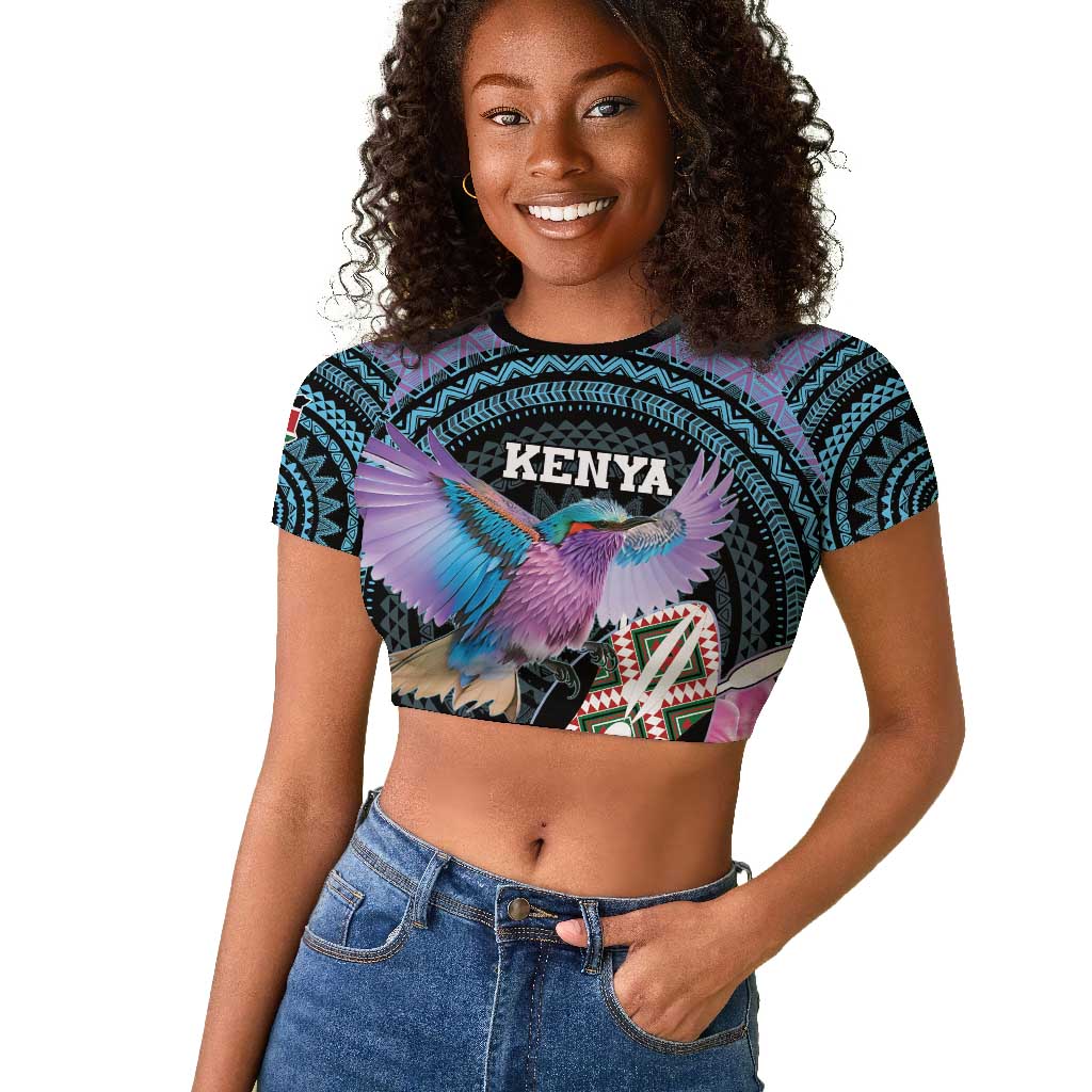 Personalised Kenya Lilac Breasted Roller Raglan Cropped T shirt Orchid Flower - African Pattern