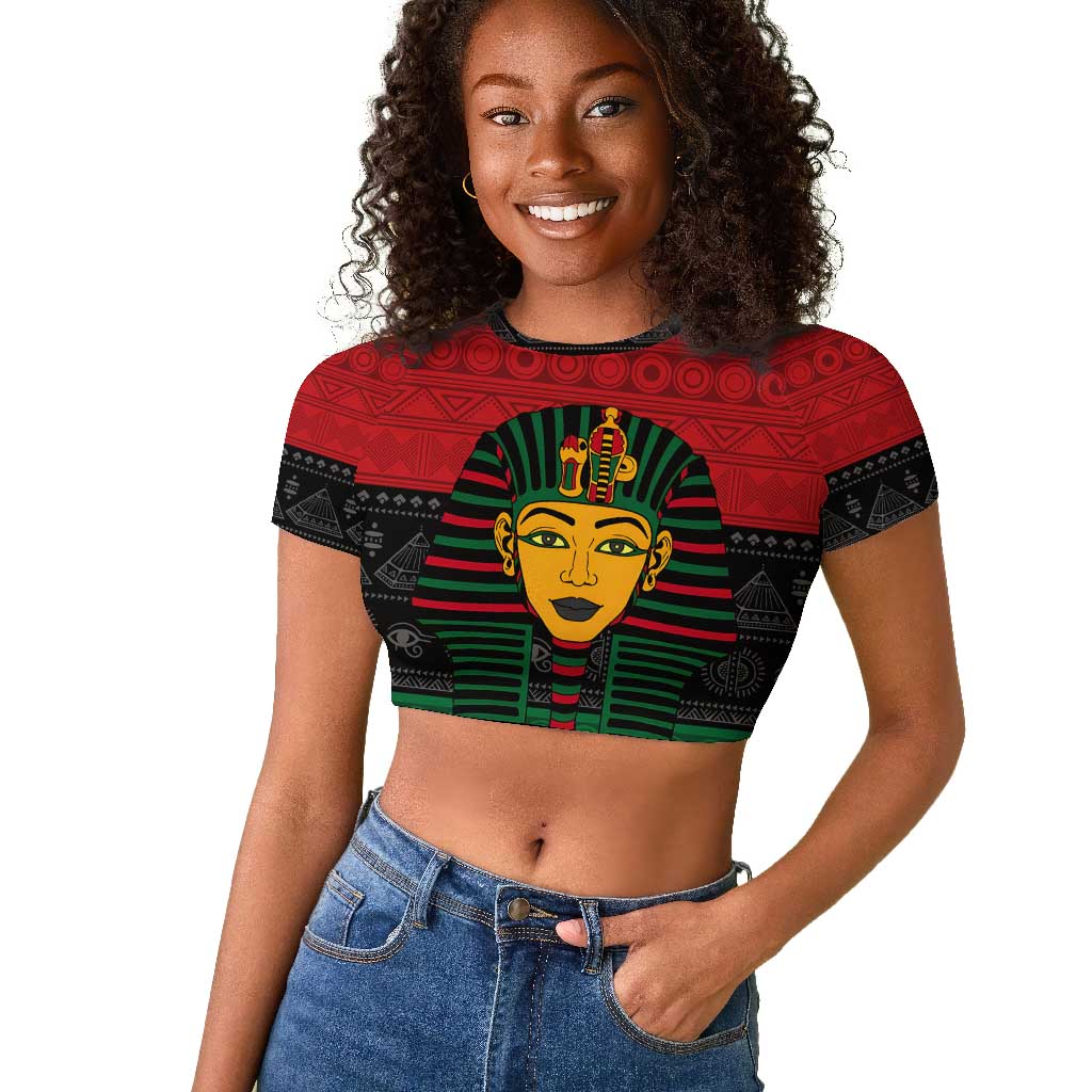 Personalized Ancient Egypt Raglan Cropped T shirt - Pharaoh in Pan-African Colors