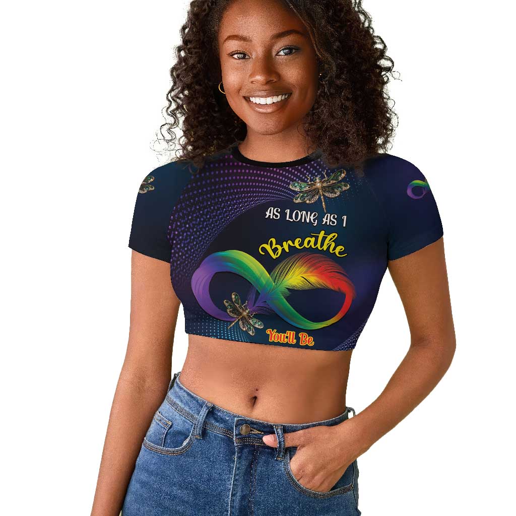 Personalized As Long As I Breathe You'll Be Remembered Raglan Cropped T shirt Luxury Dragonfly - Feather Infinity