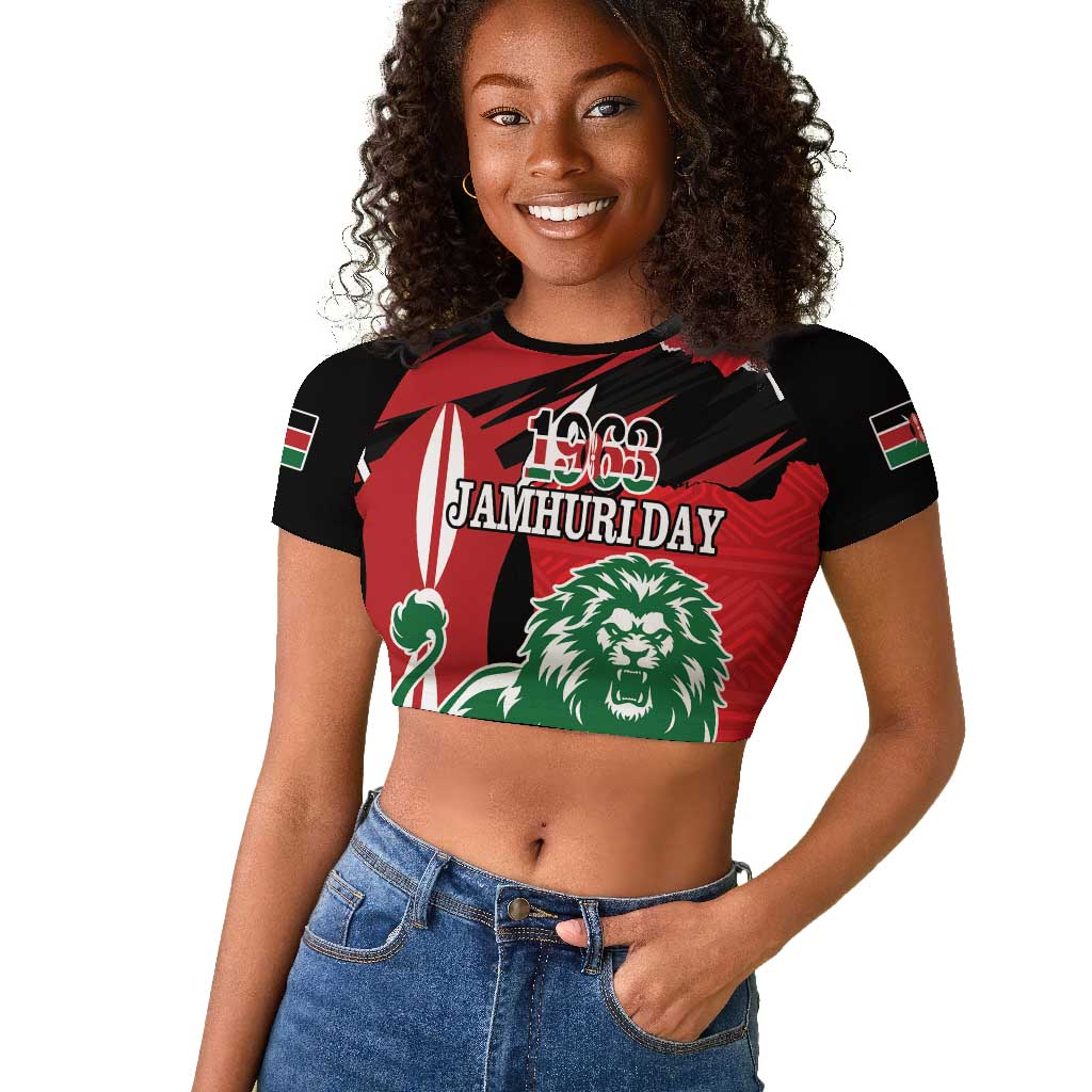 Personalized Jamhuri Day 1963 Raglan Cropped T shirt Angry Lion With African Shield