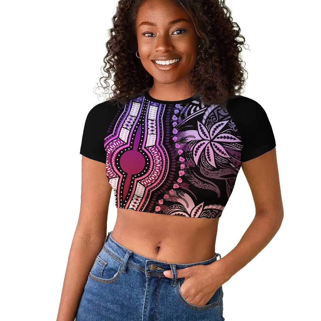 Polynesia Mixed African Dashiki Raglan Cropped T shirt Afro-pacific Culture - Pastel LT9