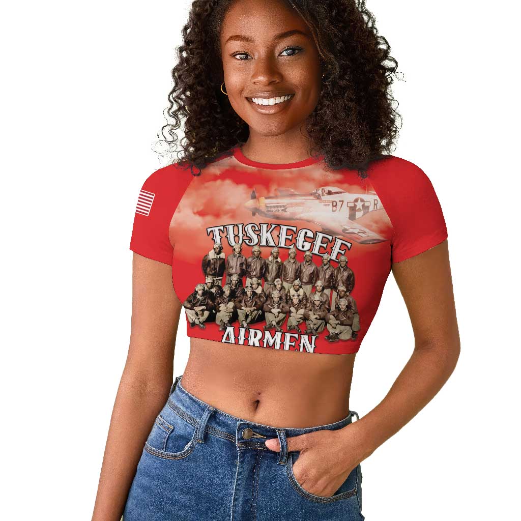Remembering the Red Tail Heroes Raglan Cropped T shirt Tuskegee Airmen Legacy - Red LT15