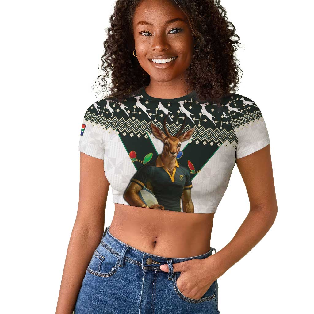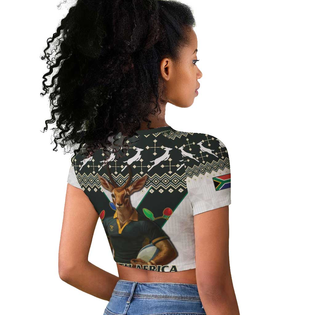 South Africa Christmas Rugby Raglan Cropped T shirt Springboks Mascot Mix African Pattern