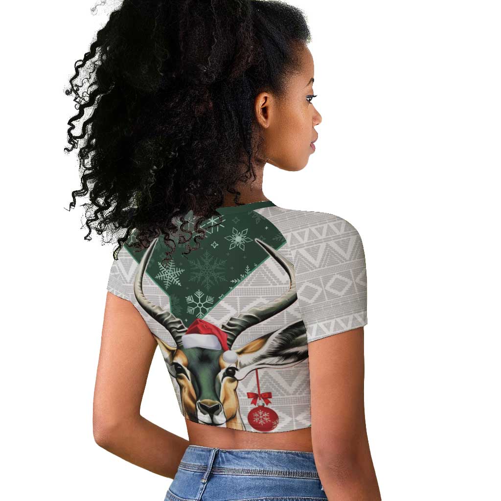 South Africa Springboks Christmas Raglan Cropped T shirt Bokke Santa - Geseende Kersfees
