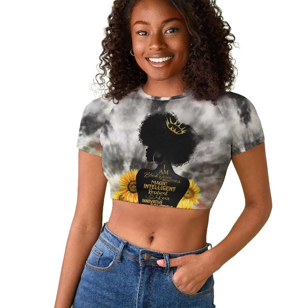 Vintage Flowers - I Am Black Queen Raglan Cropped T shirt