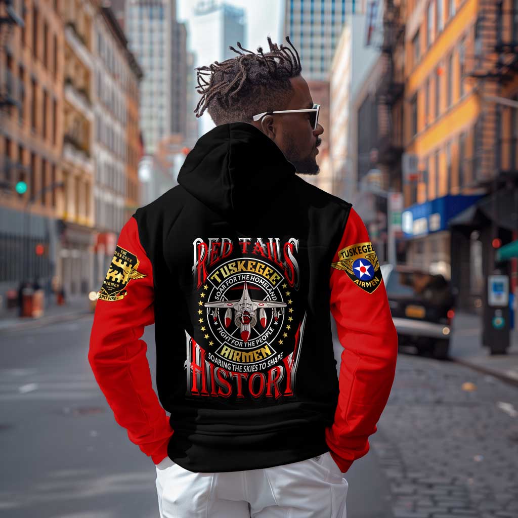 Red Tails Tuskegee Airmen Zip Hoodie Black History Fighter Plane Patriotic Tribute