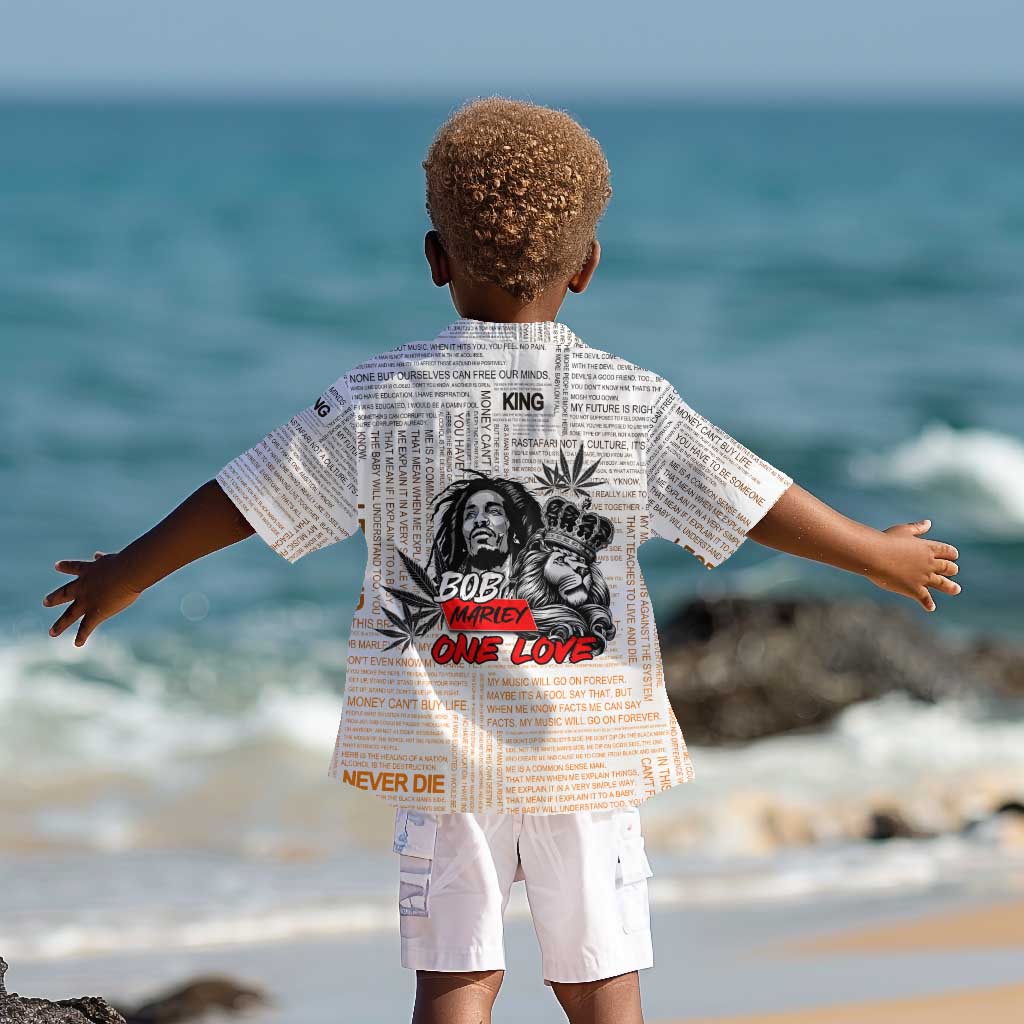 Afro King of Reggae Legend Bob Kid Hawaiian Shirt Rastafari Lion Cannabis Typography Style