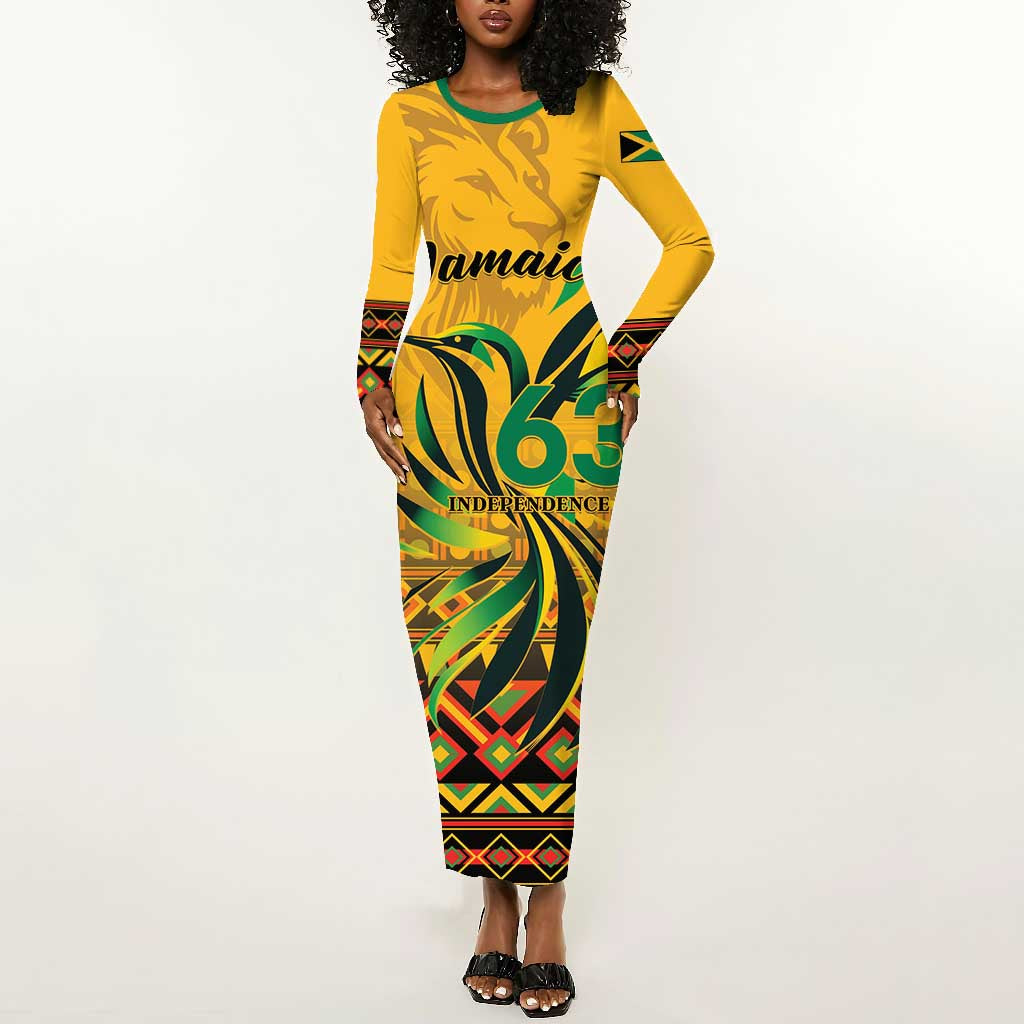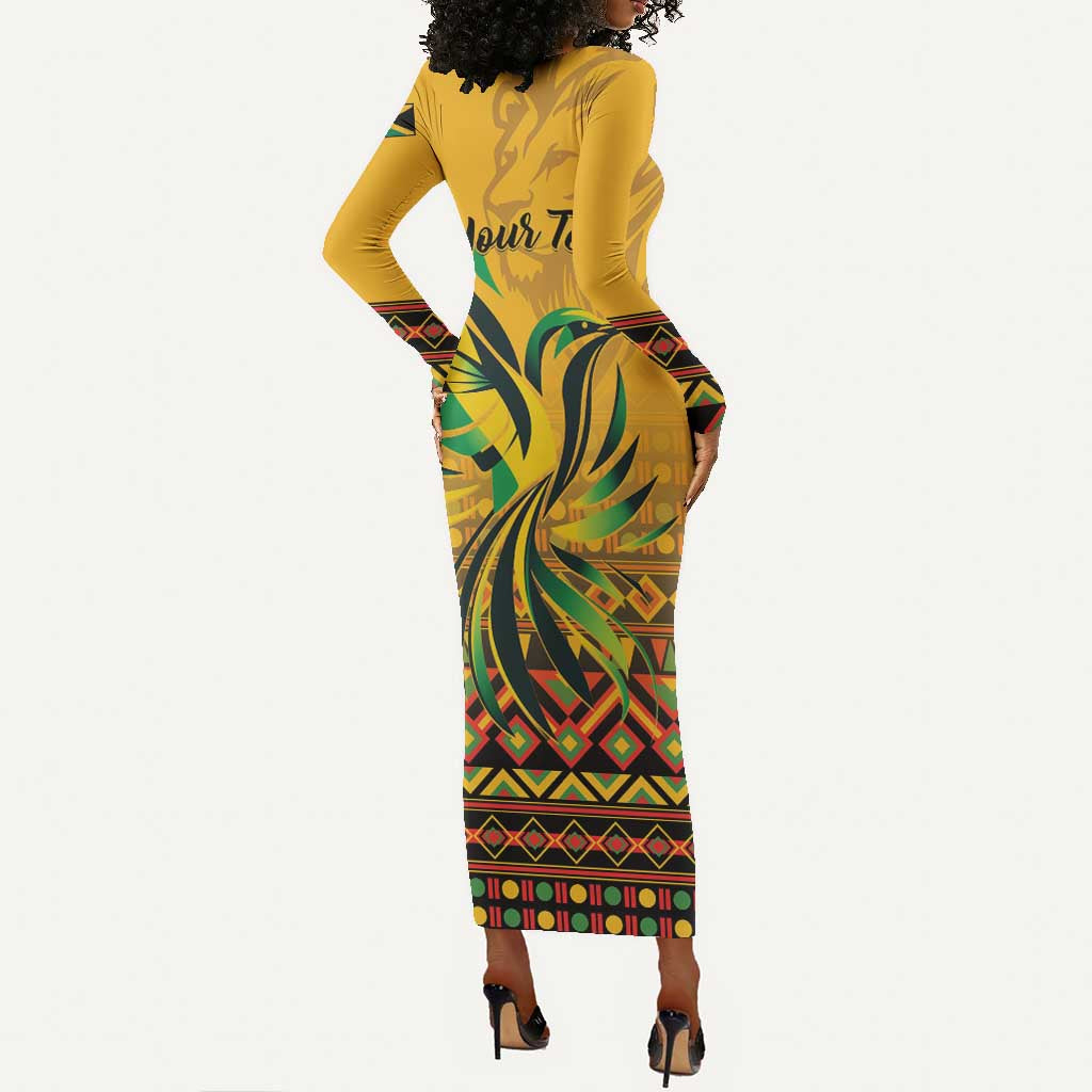 Personalized Black Jamaican Independence Day 1962 Long Sleeve Bodycon Dress Jumieka Streamertail Reggae Pattern