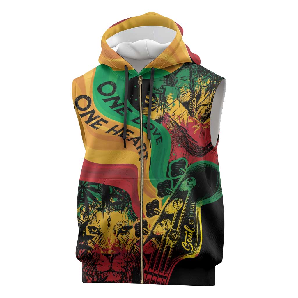 Reggae Day Sleeveless Zip Hoodie One Love One Heart