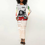 Afro King of Reggae Legend Bob Long Sleeve Bodycon Dress Rastafari Lion Cannabis Typography Style
