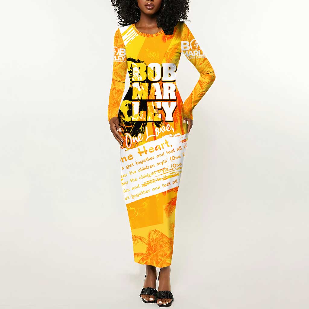 Legend Bob Reggae Afro Long Sleeve Bodycon Dress One Love One Heart Tropical Leaf