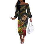 The Father of Reggae Off The Shoulder Long Sleeve Dress - Legendary Birthday Tribute LT01