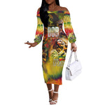 The Legend of Reggae One Love Off The Shoulder Long Sleeve Dress Bob Colorful Art DT02