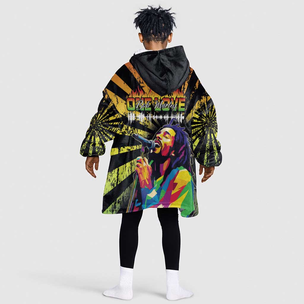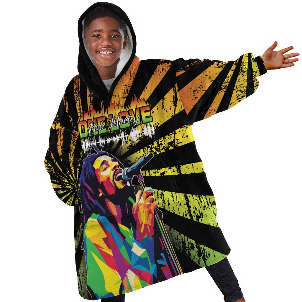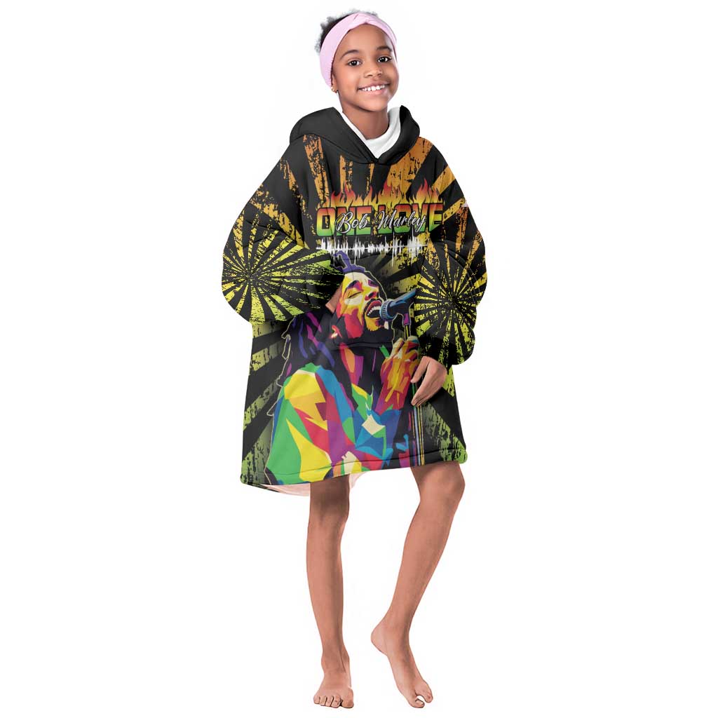 Afro-American Reggae Legend Bob Kid Wearable Blanket Hoodie One Love - Grunge Style