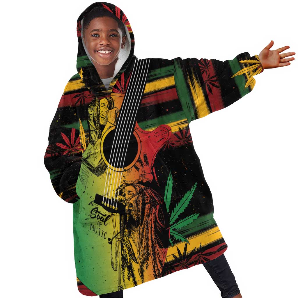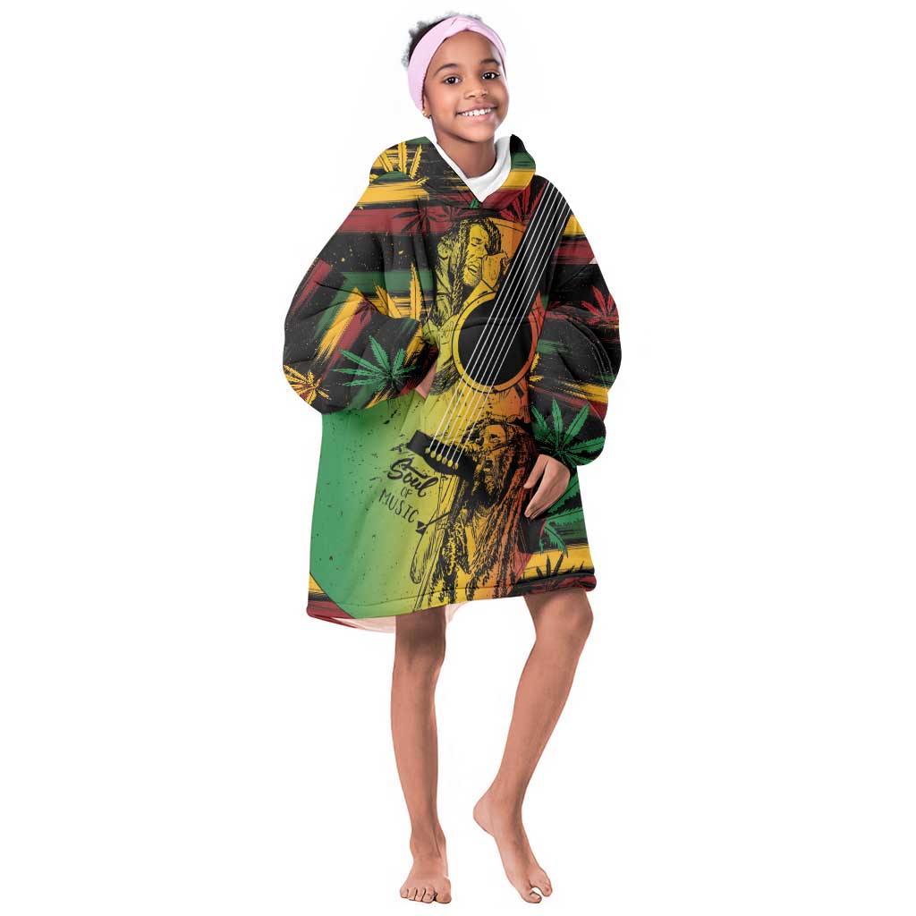 Personalised Afro Reggae Kid Wearable Blanket Hoodie Soul of Music Sketch Style