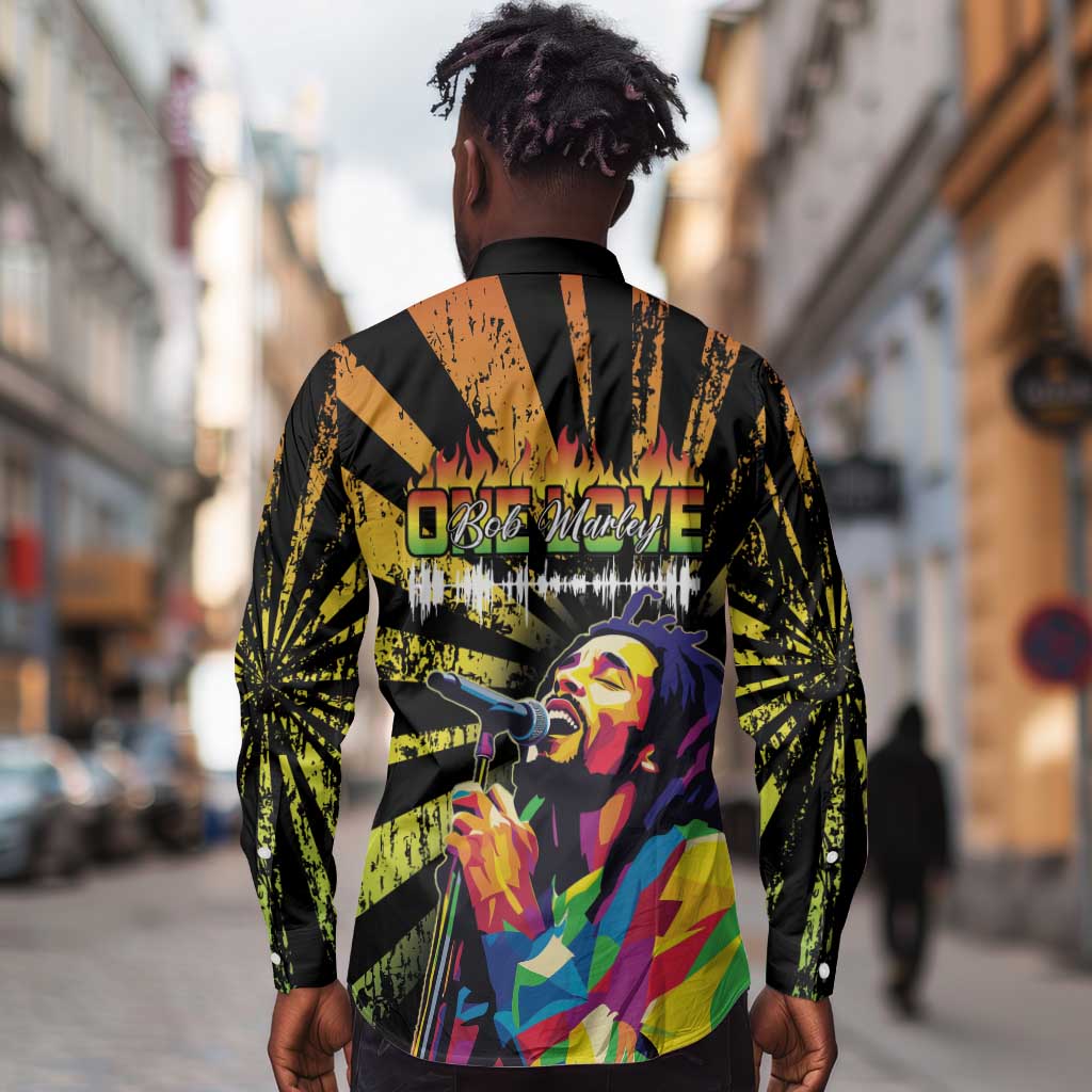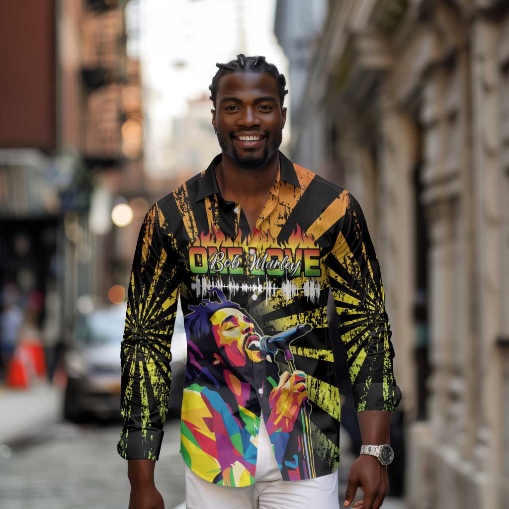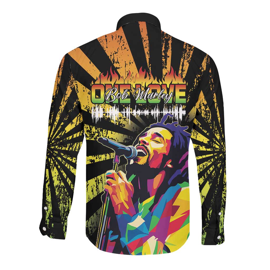 Afro-American Reggae Legend Bob Long Sleeve Button Shirt One Love - Grunge Style