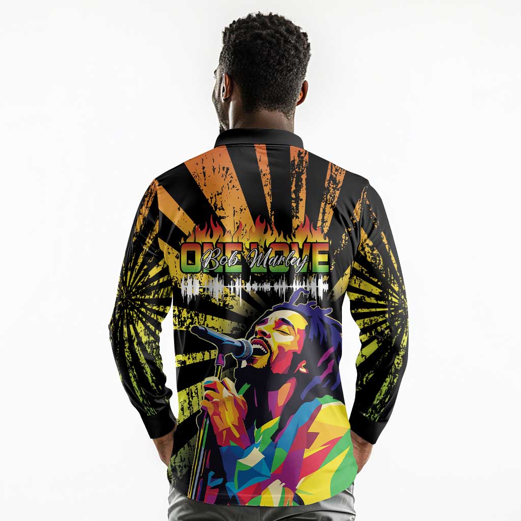 Afro-American Reggae Legend Bob Long Sleeve Polo Shirt One Love - Grunge Style