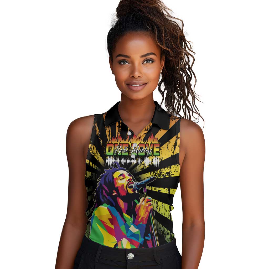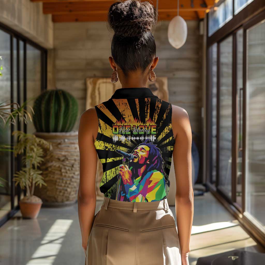 Afro-American Reggae Legend Bob Women Sleeveless Polo Shirt One Love - Grunge Style