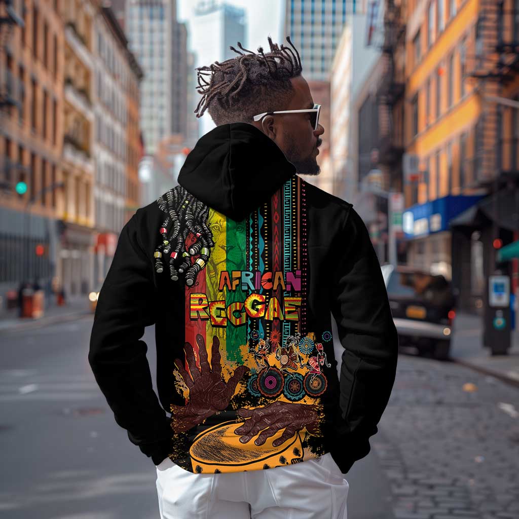 Afro-Caribbean Zip Hoodie African and Reggae Art Music