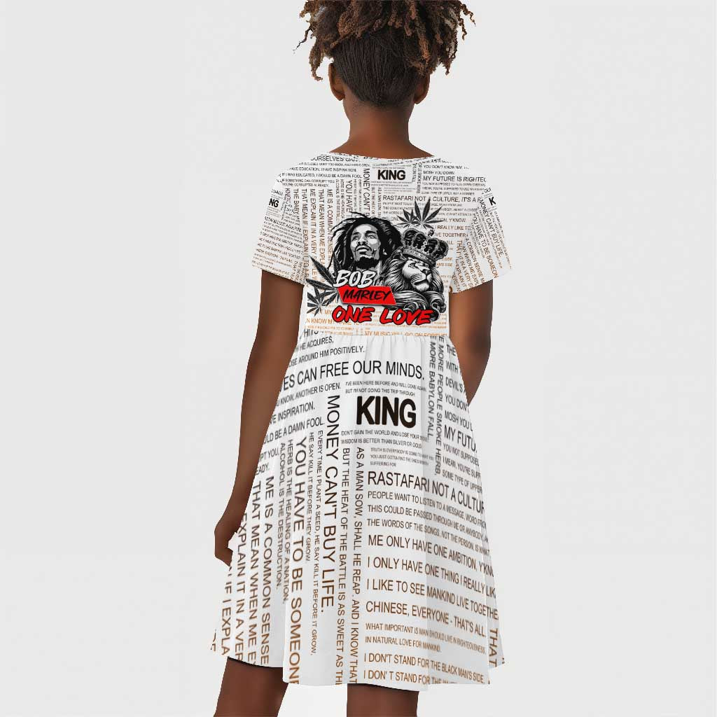 Afro King of Reggae Legend Bob Kid Short Sleeve Dress Rastafari Lion Cannabis Typography Style